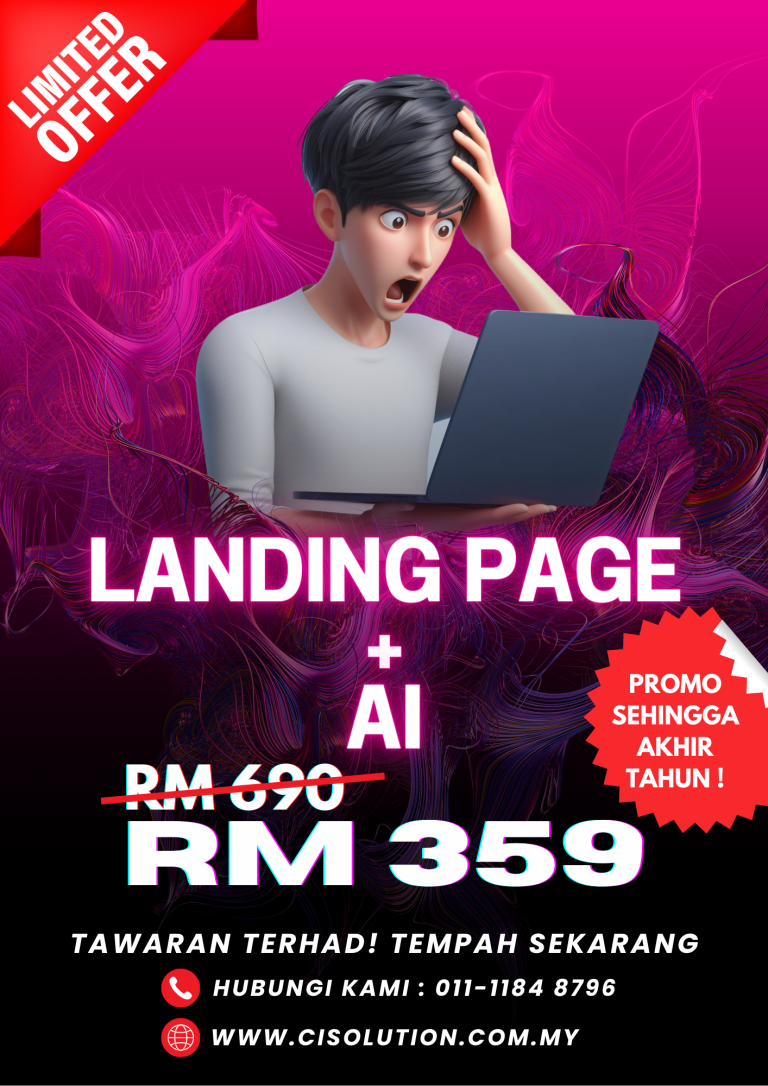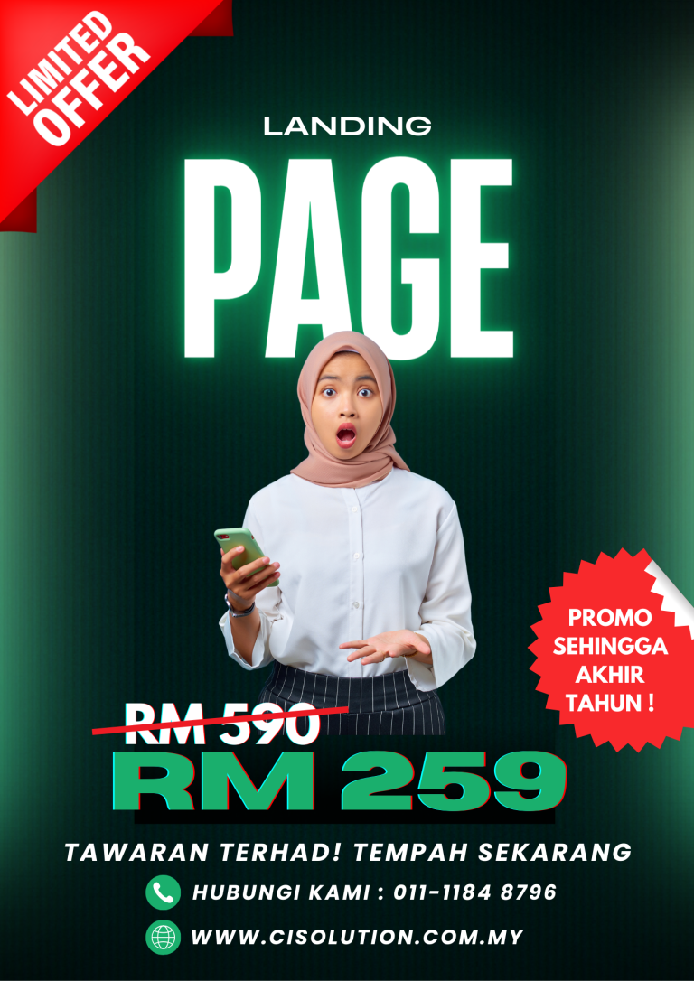 Dapatkan Landing Page berkualiti profesional, direka khas untuk menarik perhatian pelanggan anda. Apa yang menunggu? Tawaran hebat bermula serendah RM259.00!